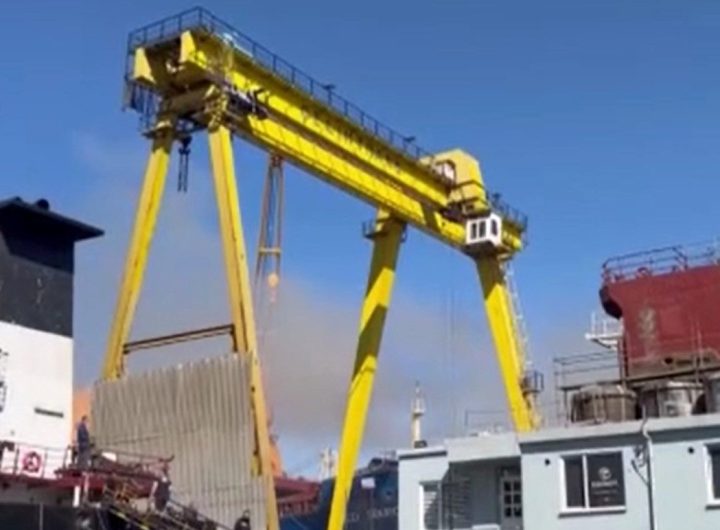 İstanbul Tuzla'da özel bir tersanede bakıma alınan yük gemisinde çıkan yangına itfaiye grupları müdahale ediyor.