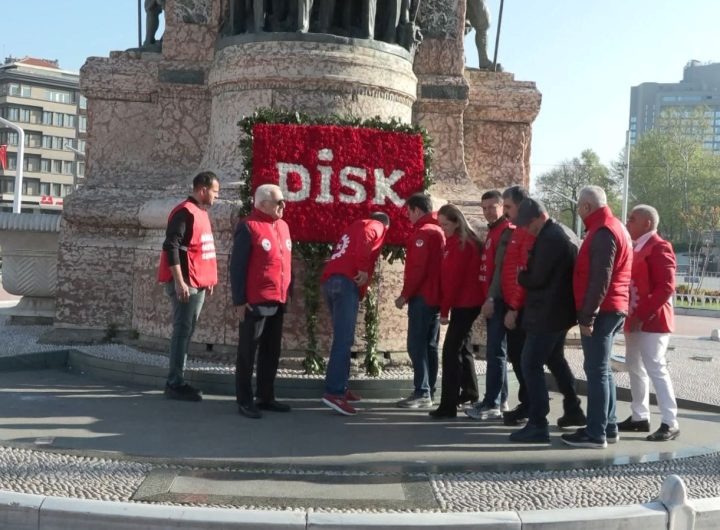 DİSK (Devrimci Emekçi Sendikaları Konfederasyonu) üyeleri, 1 Mayıs Emek ve Dayanışma günü münasebetiyle Taksim Meydanı'ndaki Cumhuriyet Anıtı'na...