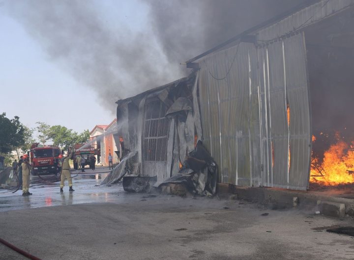 Edirne'de mobilya deposunda çıkan yangına müdahale ediliyor.