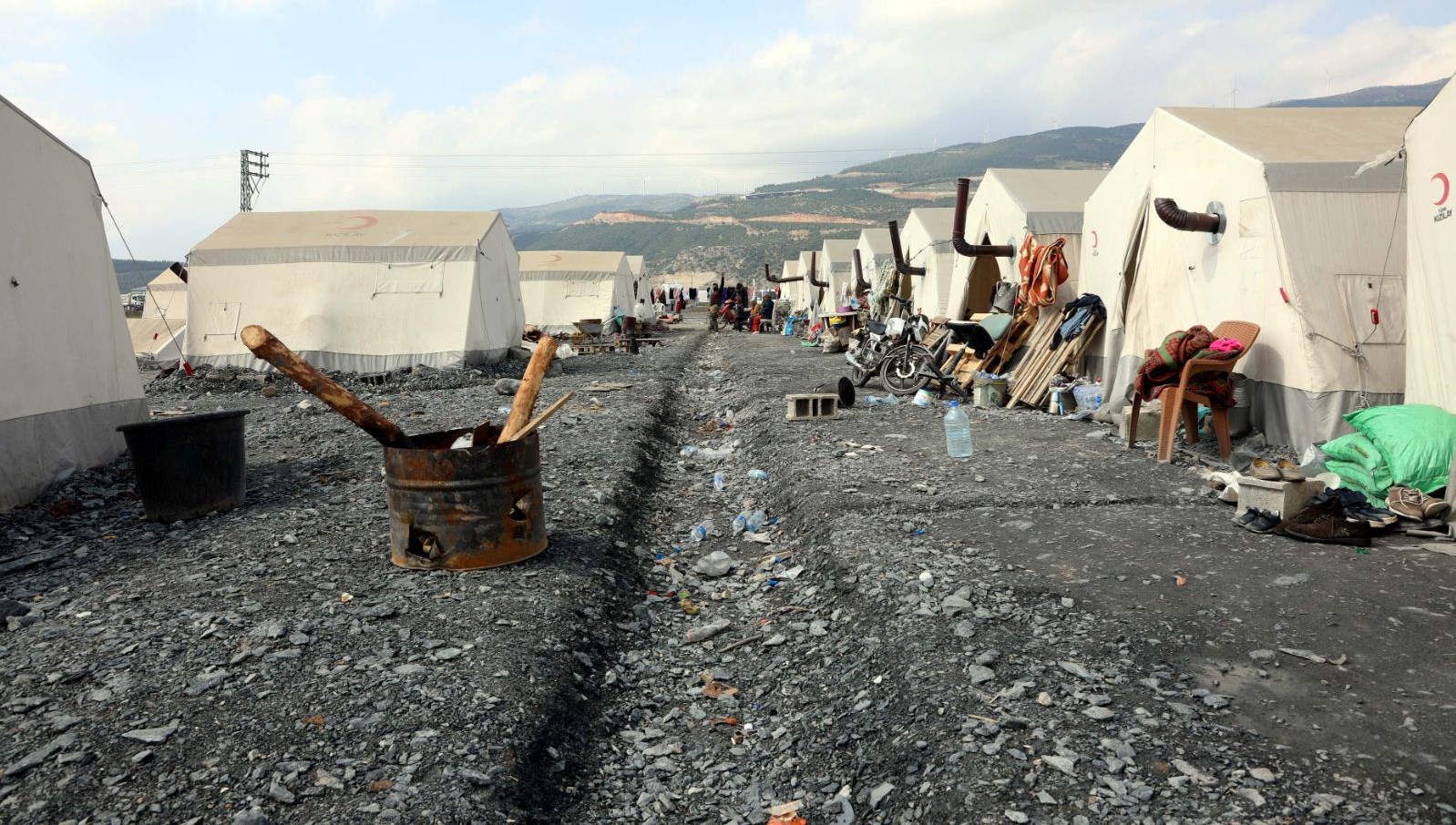 Gaziantep'te kent merkezinde tesirli olan sağanak ve dolu sonrası Nurdağı ilçesinde depremzedelerin kaldığı çadır kentte su kanalları oluşturuldu....