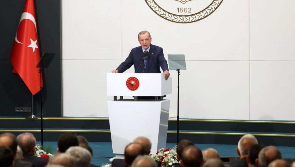 “Türkiye’yi maksatlarına ulaştırmadan, gelecek kuşaklara, üzerinde memnun, müreffeh yaşayabilecekleri bir ülke bırakmadan huzura ermeyeceğiz” sözünü kullanan Erdoğan, bunun için yürütmesi, yasaması, yargısıyla, devletin organları ortasında uyumlu bir işbirliğinin tesisinin çok önemli olduğunu lisana getirdi.