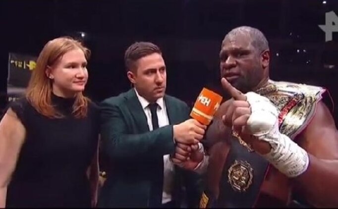 ABD'li boksör Kevin Blue 'Kingpin' Johnson (43) dün Rusya'da yaptığı ve kazandığı maç sonrasında Rusya Devlet Lideri...