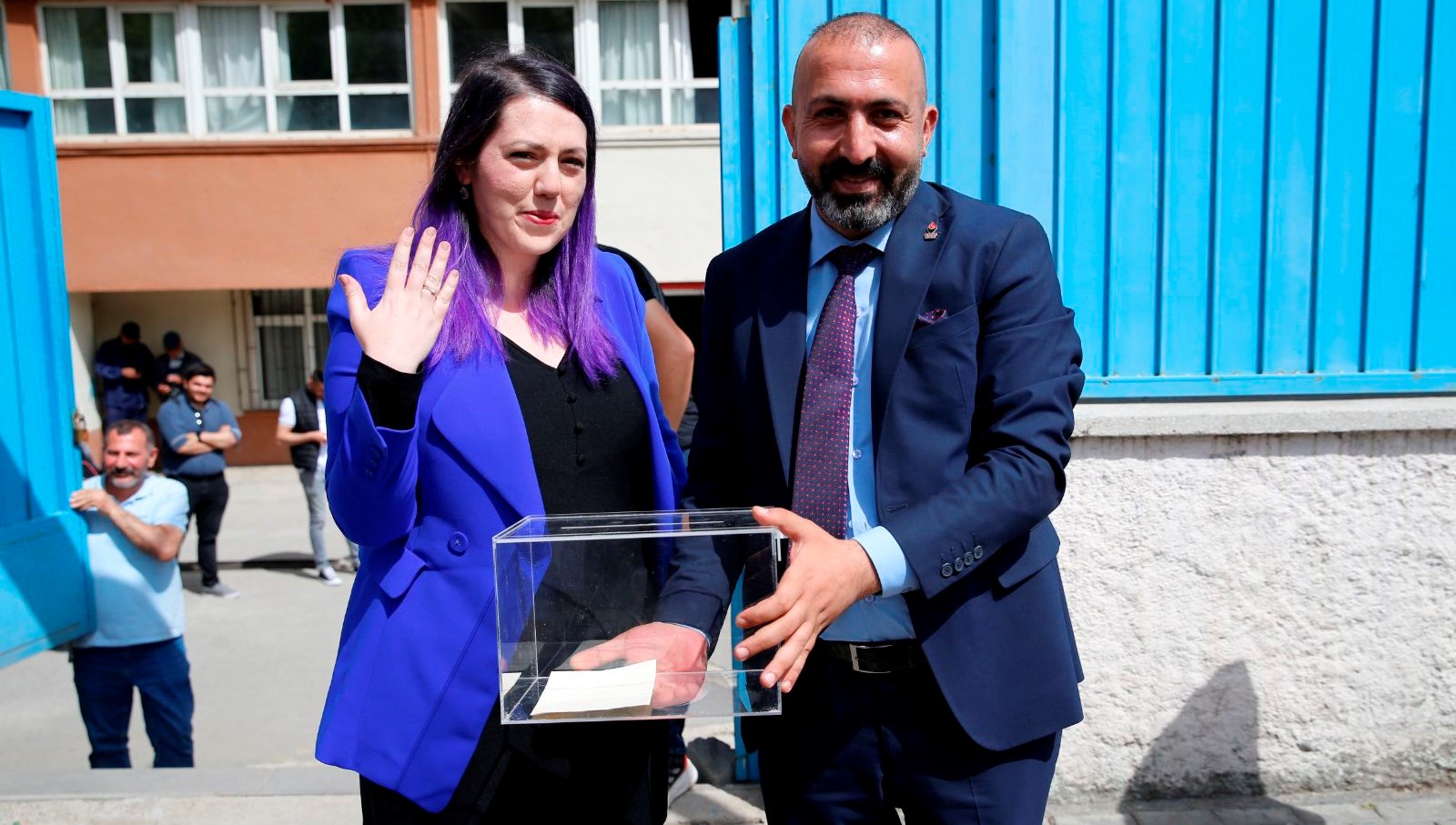 Esin’in “evet” karşılığının akabinde Özbey, kız arkadaşının parmağına yüzüğü taktı. Esin de “Evet” yazan mührü, Özbey ile fotoğrafının bulunduğu oy pusulasına basarak zarfı sandığa attı.